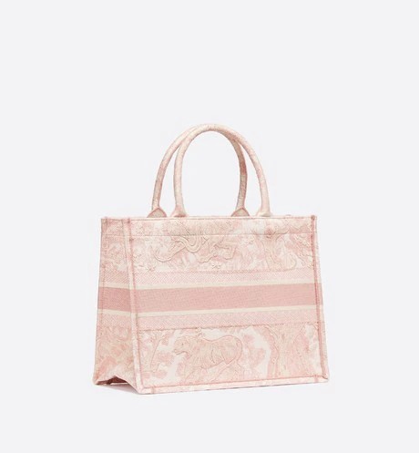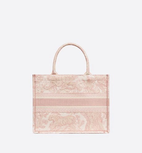 マリア・グラツィア・キウリが発表したオリジナル スタイルのディオール「ブック トート」。ディオールの美意識を語る上で今や不可欠なスタイルです。日々の必需品をすべて収納できるサイズ感に仕上げ、ピンクの「トワル ドゥ ジュイ」モチーフの刺繍を全面にあしらいました。フロントには“CHRISTIAN DIOR”シグネチャーでアクセントをプラス。メゾンを象徴するサヴォワールフェールを体現したこのスモール トートは、ハンドバッグまたはショルダーバッグとしてお使いいただけます。