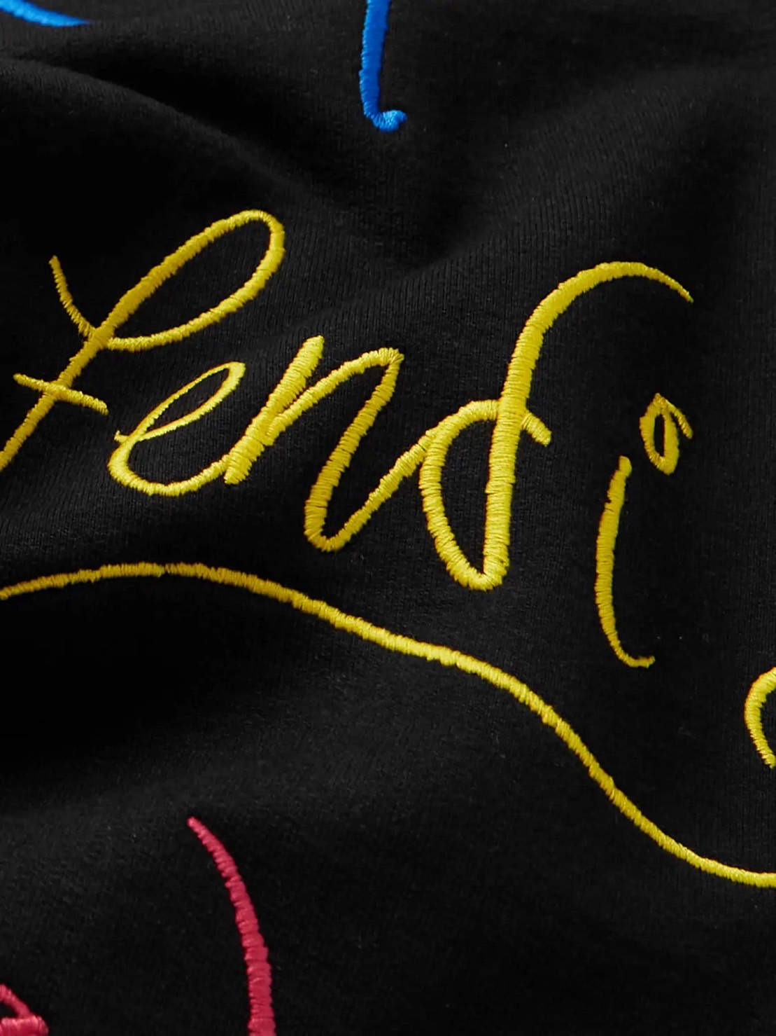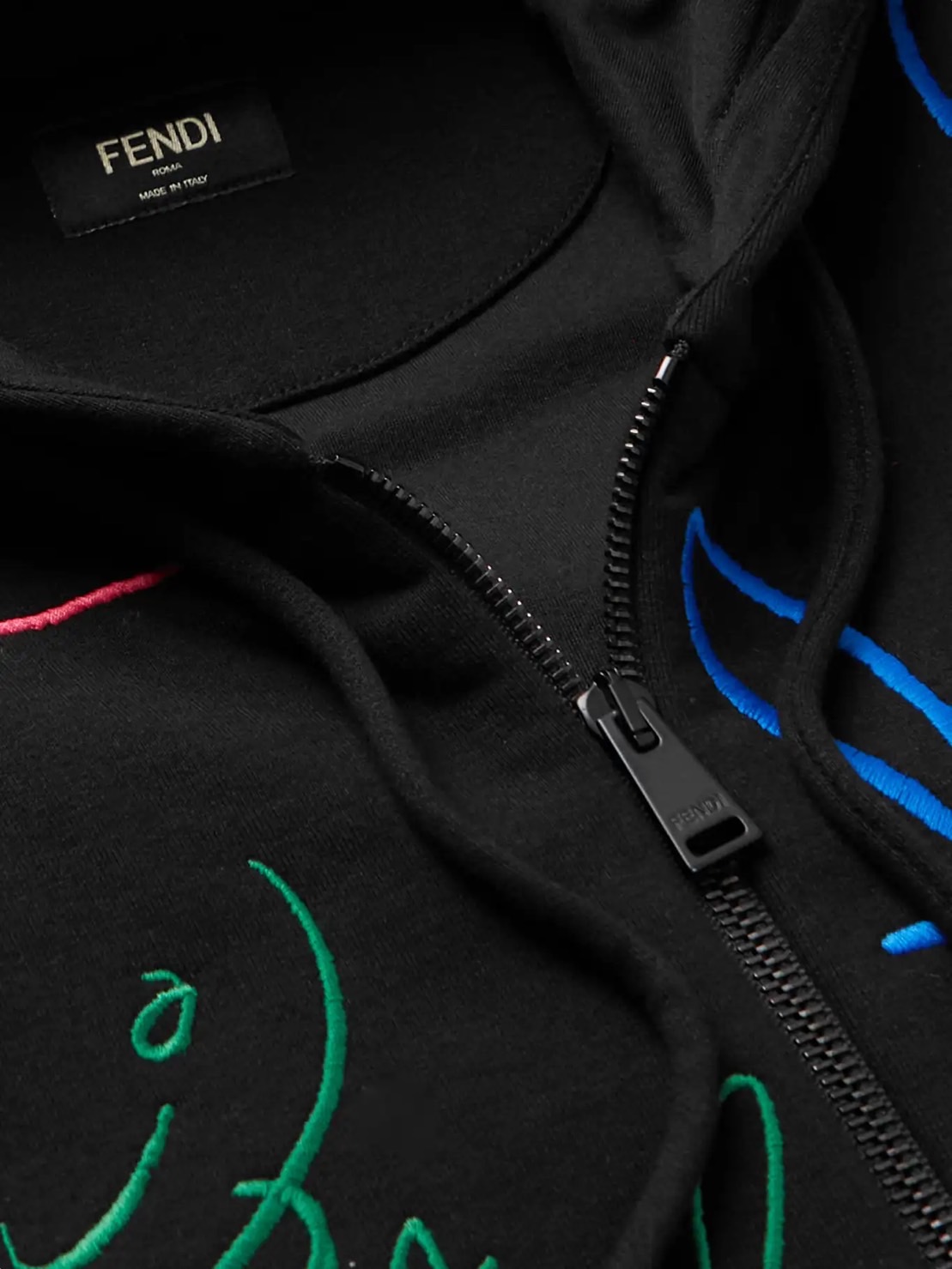 アーティスト、ノエル・フィールディングがデザインしたマルチカラーの刺繍が映える、ブラックのパーカー。